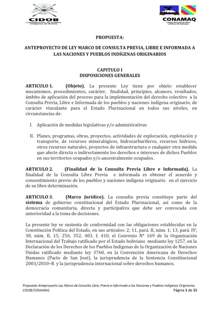 ANTEPROYECTO LEY DE CONSULTA PREVIA LIBRE E INFORMADA
