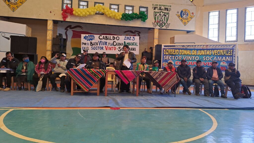 El día domingo 2 de julio se realizó el gran cabildo Vecinal “Por el Buen Vivir y la Calidad Ambiental” con mas de 20 juntas vecinales articuladas en el Consejo Zonal de Juntas Vecinales Vinto Socamani con determinaciones unánimes que exigen el cierre inmediato de empresas ilegales y la urgente protección de las fuentes de agua.