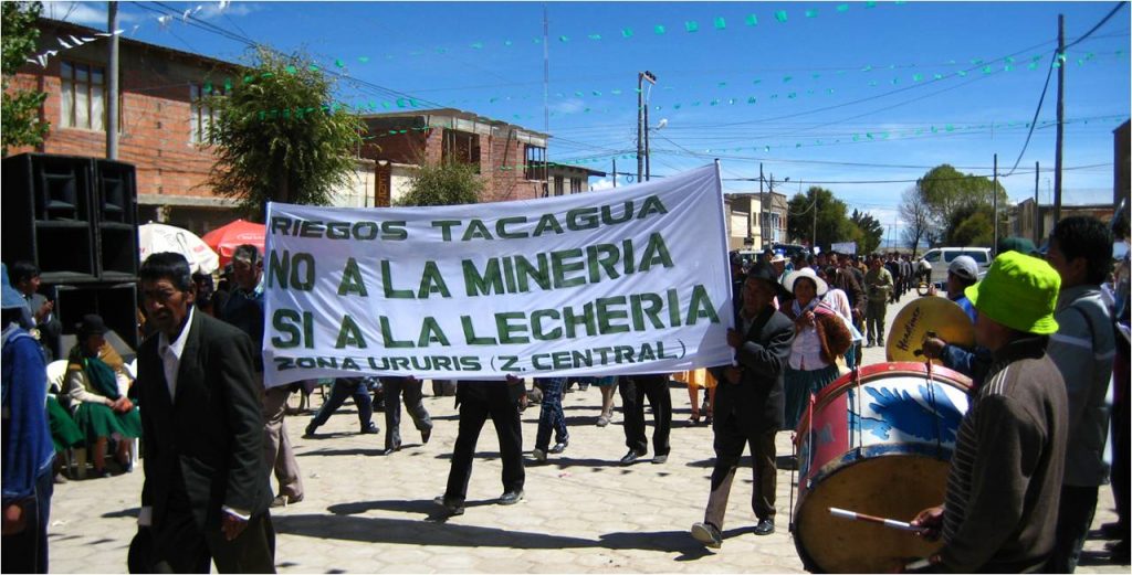 La Asociación de usuarios del sistema de riego de la Represa de Tacagua, el Gobierno Municipal de Challapata y el colectivo CASA damos inicio a la campaña «50 años de producción sin contaminación» que tiene por objetivo hacer conocer a las autoridades y la población en general el rechazo a todo intento de exploración y explotación minera en la zona ya sea por la empresa Transnacional Castillian Resources y por cualquier otra empresa.