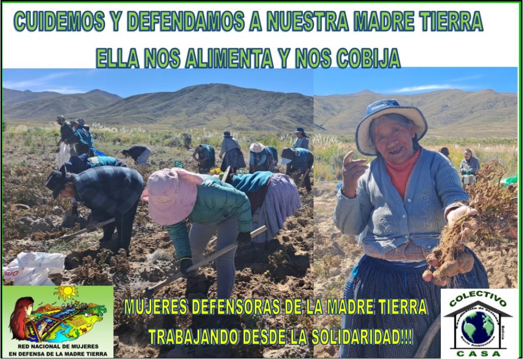 Las mujeres defensoras nos comparten la reflexión de que la Madre Tierra nos alimenta con sus frutos, nos nutre, nos permite trabajar desde la solidaridad y cultivar sus bienes, nos da agua, plantas medicinales, nos enseña la reciprocidad, para resistir y vivir.
