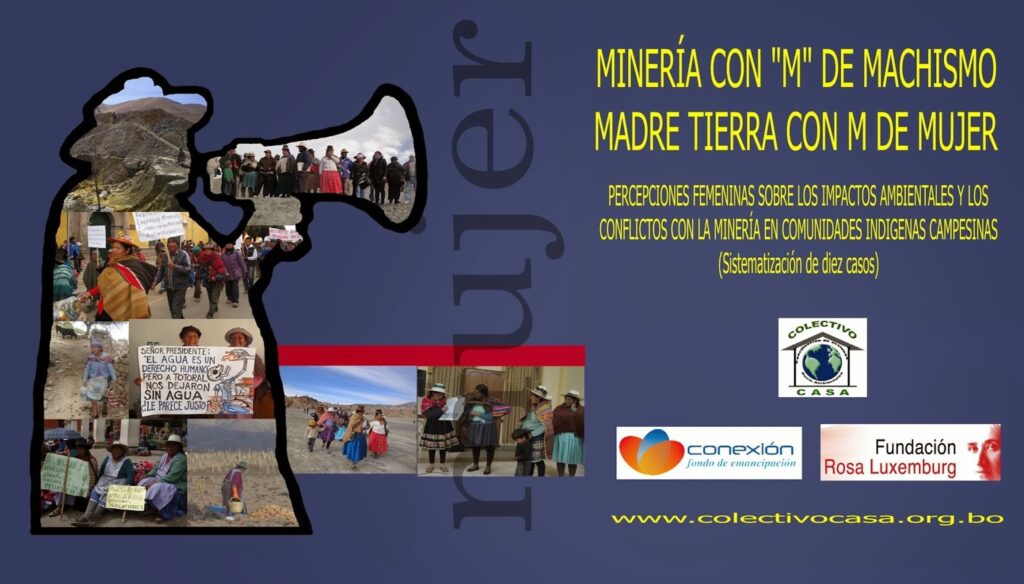Por eso desde el Colectivo CASA, como un homenaje a este día, presentamos la publicación: “Minería con M de Machismo y Madre Tierra con M de Mujer”, donde pretendemos reflejar los impactos de la minería desde la mirada de las mujeres, quizá no distinta, pero si con otros puntos de vista más sensibles y agudos de los problemas que afectan a sus comunidades.