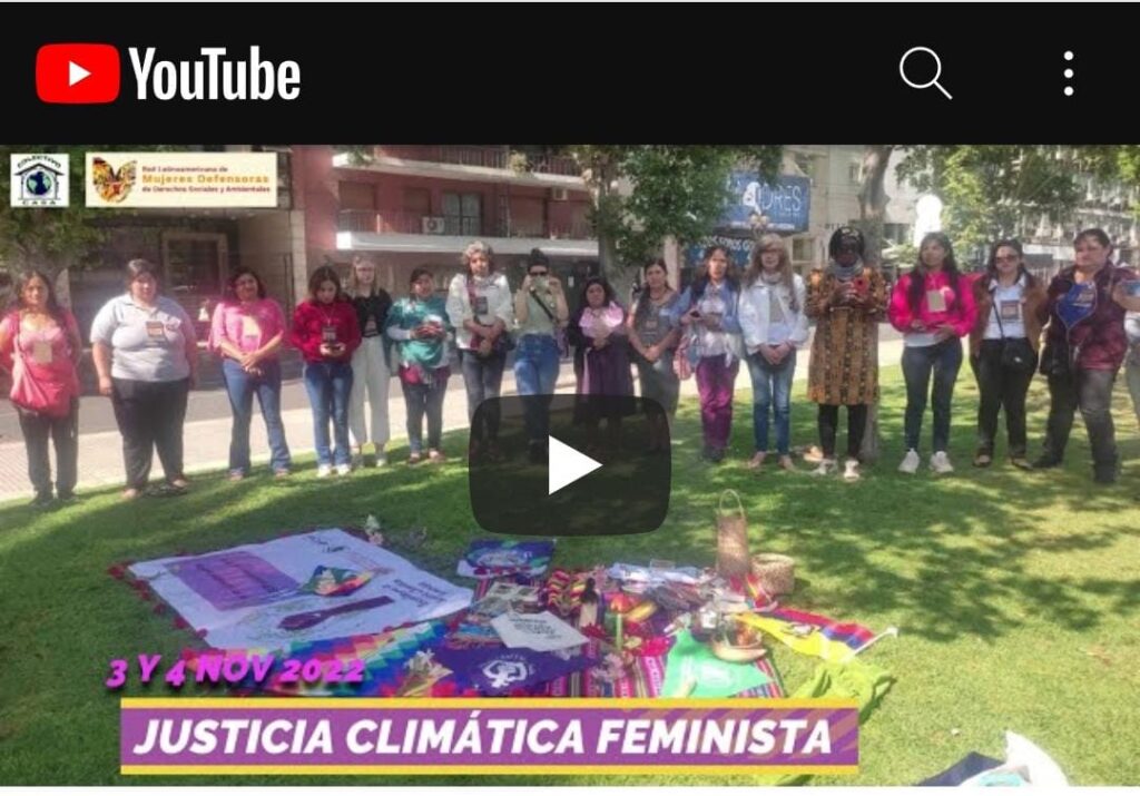 En el marco del Primer Encuentro Latinoamericano de Defensoras Ambientales para la Acción Climática, los días 3 y 4 de Noviembre, en Buenos Aires Argentina; representantes de la Escuelita por la Justicia Climática Feminista, participaron con la campaña #JusticiaClimáticaFeminista #SOSFalsasSolucionesCOP27.