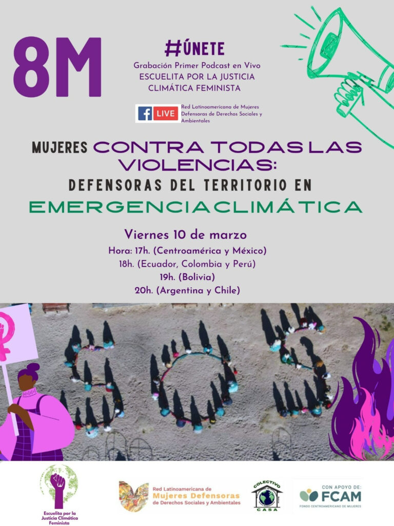 ✊🏽💜💚Desde el Colectivo CASA y la Escuelita por la Justicia Climática Feminista de la Red Latinoamericana de Mujeres Defensoras de Derechos Sociales y Ambientales, nos sumamos al bloque Ecofeminista en la conmemoración de este 8 de marzo.