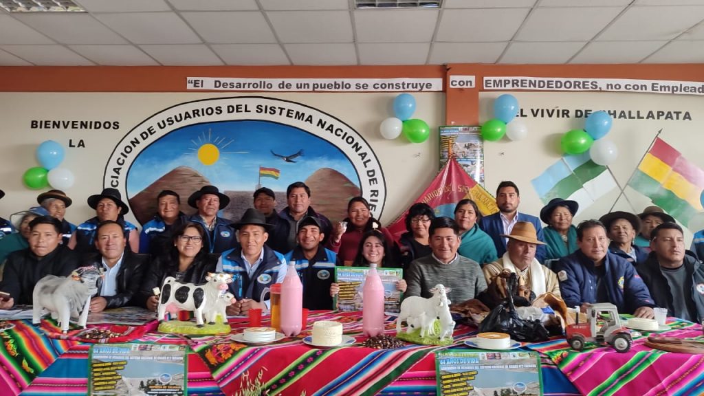 Colectivo CASA.-A los pies de la majestuosa Represa de Tacagua en Challapata, desde tempranas horas de la mañana del dia viernes 11 de abril y compartiendo una deliciosa ambrosía (leche recién ordeñada con singani), se desarrolló la feria aniversario de la Asociación de Regantes, conmemorando 64 años de funcionamiento de la Represa de Tacagua, una represa social que conecta con el riego a 63 comunidades productivas.
