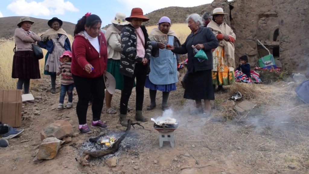 La Madre Tierra está presente en cada una de nuestras acciones, le pedimos permiso y le agradecemos, dialogamos con ella pijchando (mascando) coca, en el intercambio de aguas, y con el ofrecimiento de la mesa blanca. En agosto mes en que la madre tierra se abre para comer, y las mujeres ofrecims nuestra mesa blanca y la Khoa en la comunidad de Realenga, con grata sorpresa el vinito explotó augurando que nos va a ir bien en nuestras familias, en nuestra comunidad, en la defensa del territorio y en nuestra unidad como hermanas. Jallalla Mujeres Defensoras de la Madre Tierra!!! Jallalla Colectivo CASA!!! Jallalla RENAMAT!!!
