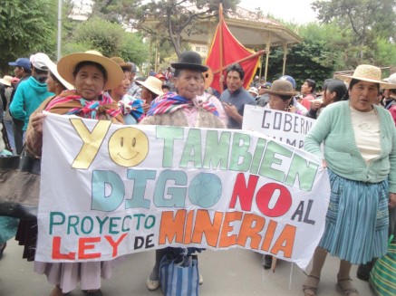 A partir de la entrega del proyecto de Ley Minera por el Presidente Evo Morales a la Asamblea Legislativa Plurinacional de Bolivia, se desataron diversas acciones de resistencia desde las organizaciones sociales, pronunciamientos, declaraciones, manifiestos, bloqueo de caminos y marchas en rechazo a la ley minera con un rol protagónico de las mujeres.