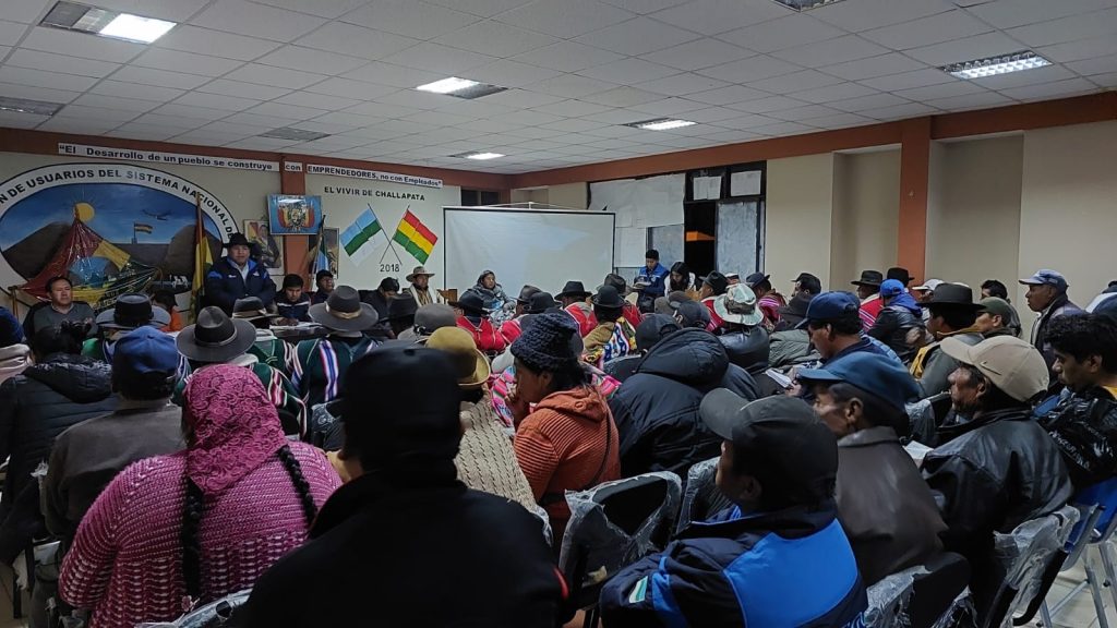 En amplia reunión de las diversas organizaciones e instituciones de Challapata entre ellos el gobierno autónomo municipal de Challapata, los Concejales de Challapata, la Asociación de Usuarios del Sistema de Riego N2 Tacagua, las autoridades Originarias de los 7 ayllus de la marka Challapata, el Suyu Jakisa, la comunidad de Malliri, la red de Mujeres en Defensa de la Madre Tierra, el Colectivo CASA, Comité cívico, transportistas, entre otros, se determinó emitir la siguiente convocatoria:
